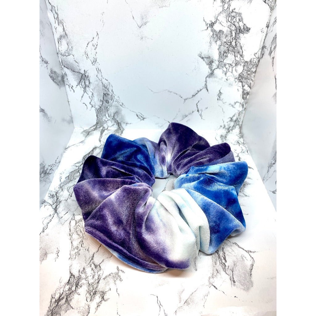 • Blue and Purple Tie Dye Velvet Oversized Scrunchie